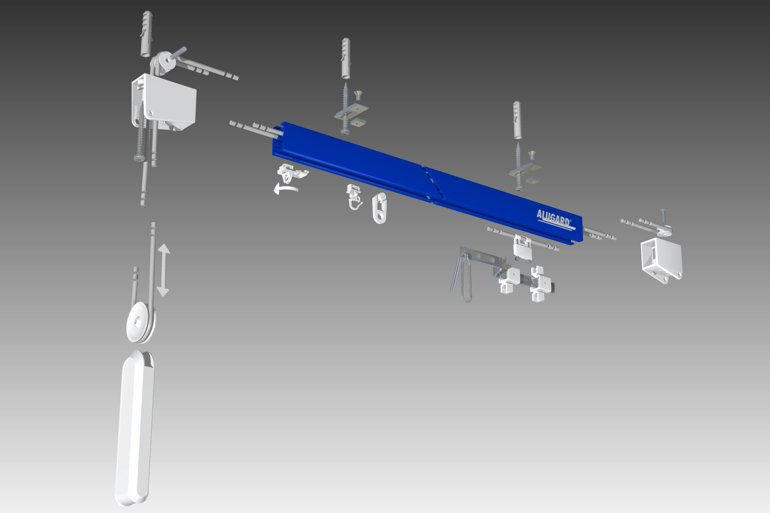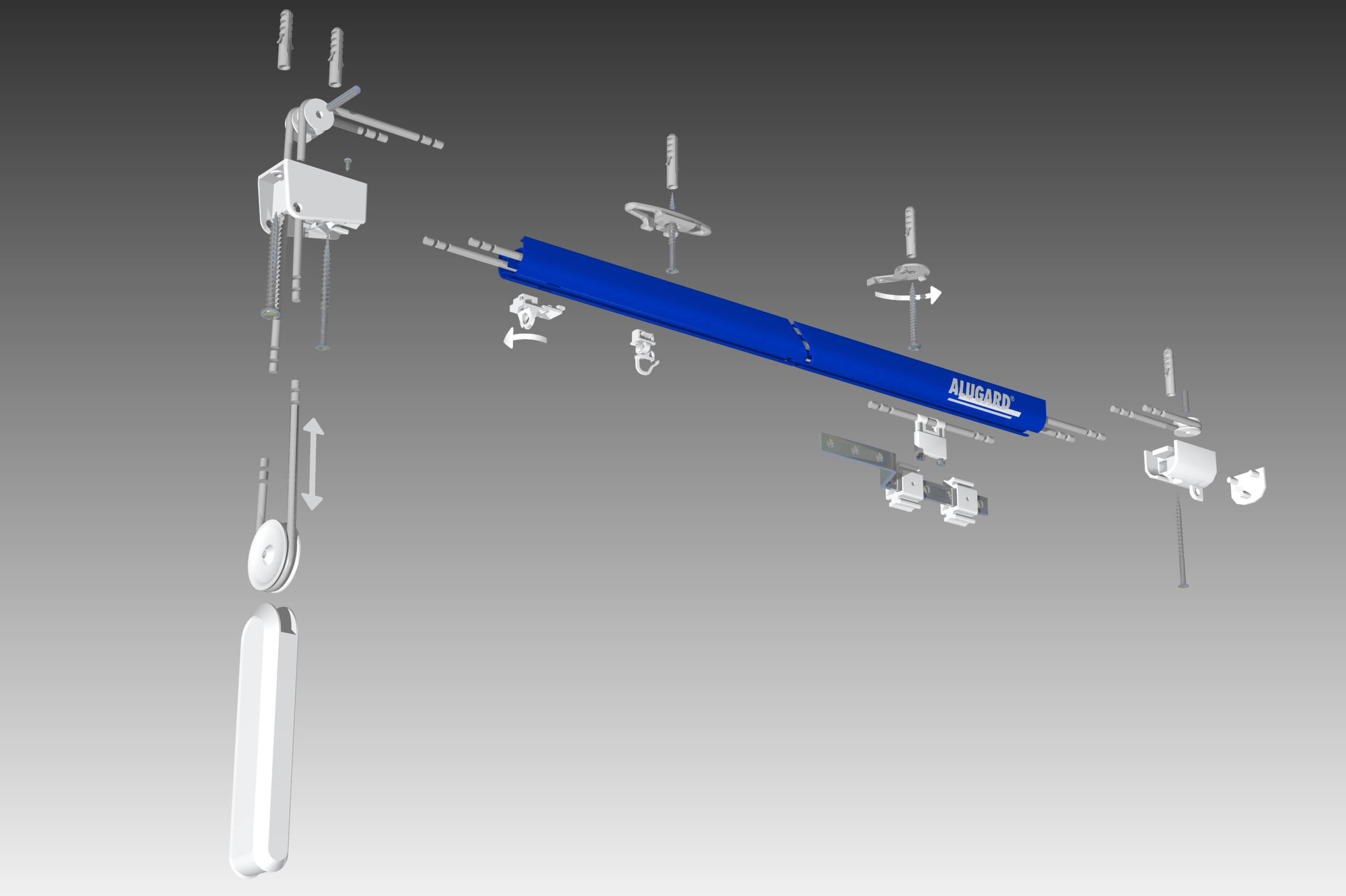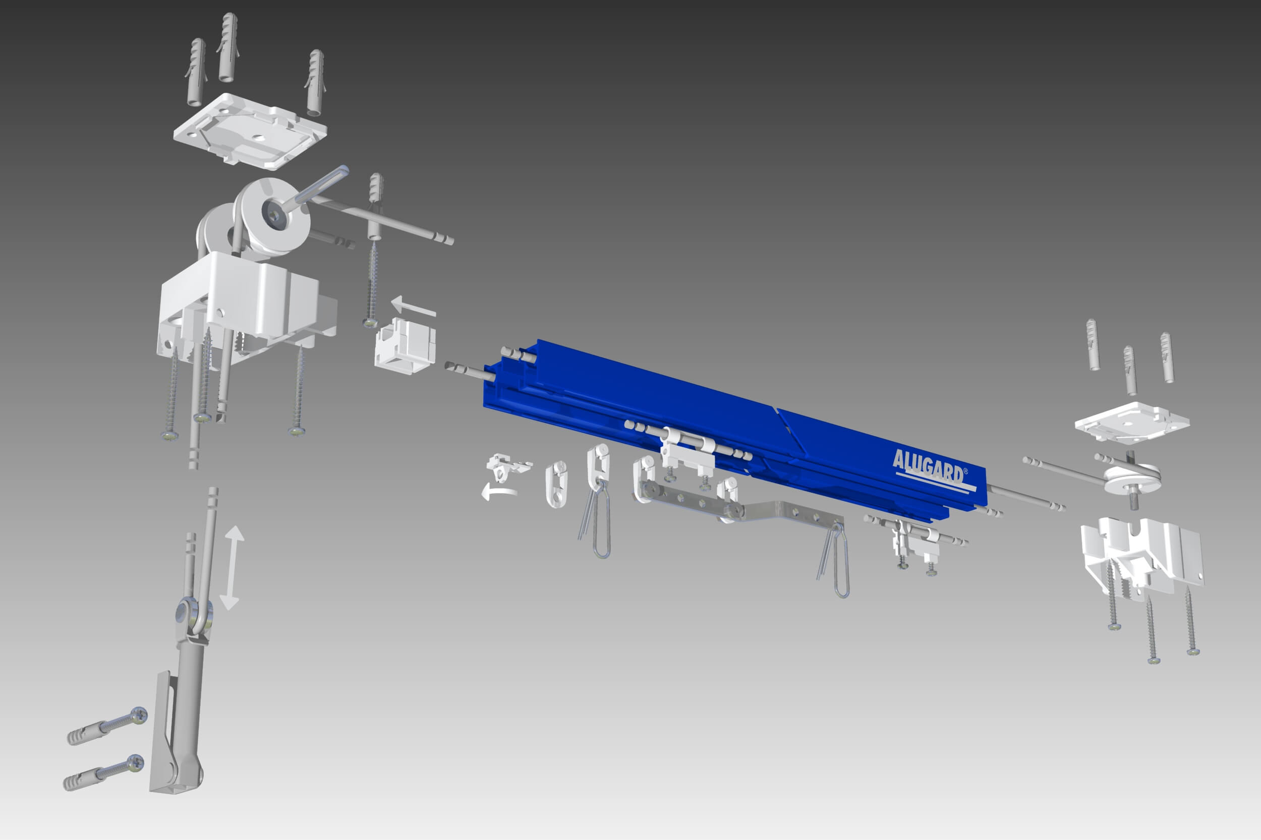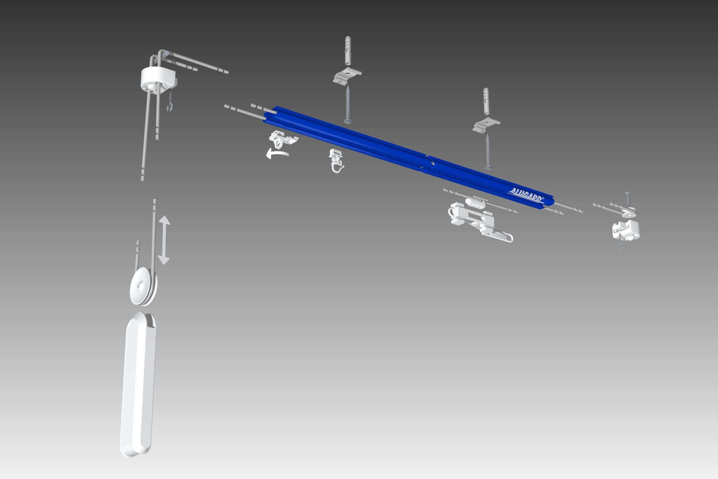 - Befestigung mit Decken-, Stil- oder Universalträgern