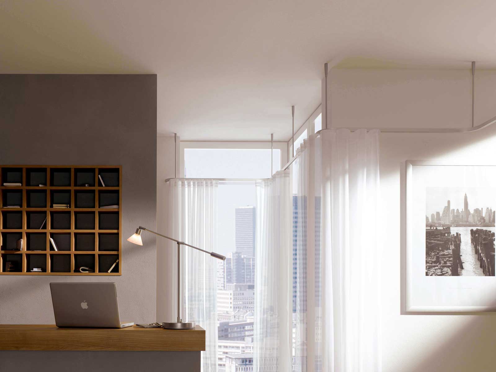 Große, kühle Glasflächen brauchen weichen Stoff, Licht und einen stilistischen Auftrag. Vielleicht hat damit die wohnliche Verbindung von Fenstern und textilen Dekorationen begonnen. Möglich macht sie seit vielen Jahren die Gardinentechnik von Alugard mit ästhetisch schönen und technisch perfekten Lösungen, damit Stoffe ihre Wohn-Mission erfüllen können.